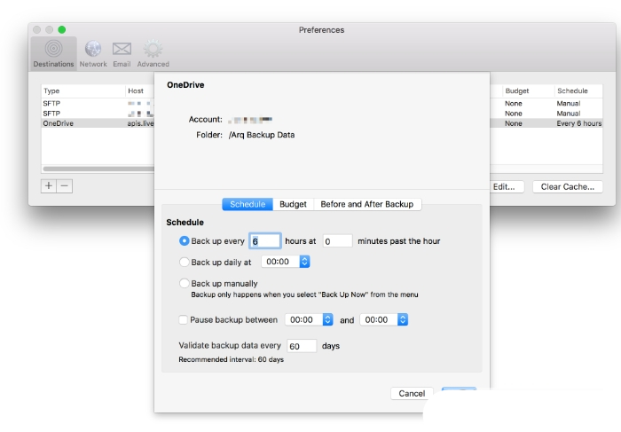 Arq保留文件的多个版本备份历史记录,所以如果你发现一个文件被损坏或意外删除,你可以回去拿旧版本。