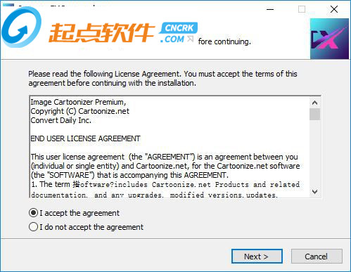 1、下载FXCartoonizer_Setup.exe软件启动,勾选I accept the agreement