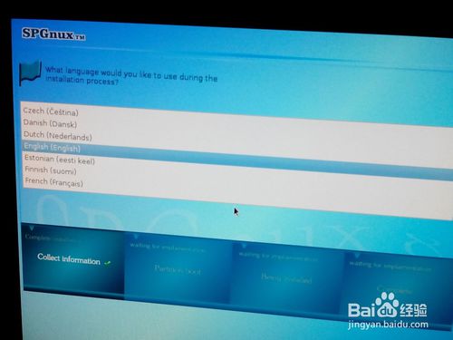 一、收集信息录入1、首先将电脑设置从U盘启动(如何设置请百度),插入U盘后重启电脑,出现第一个界面选择安装回车进入语言选择界面,如下图。