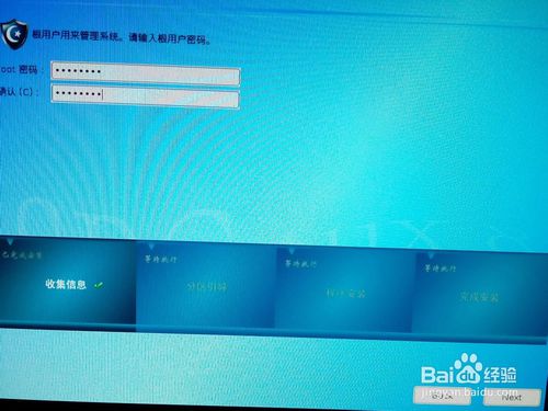 7、这里很重要,输入根用户密码,2次,然后点击“next”,进入分区引导步骤。
