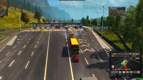 驾驶体验:驾驶过程中玩家可以按1-8键切换自己的驾驶窗口,这些分别对应着车内,车外,左视镜,上空等等,L是汽车灯,P键可以打开雨刷,H键是喇叭,空格键是刹车,玩家可以在开始阶段分别熟悉一下这些按键之后在开始运输活动。