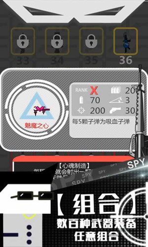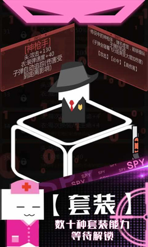 《特工使命》是一款在Mr.Gun的基础玩法上,进行了深度改造的游戏。这款游戏被改造成了一个射击类游戏,去除了一击毙命的设定,给每个角色设定了血条这个概念,需要将敌人血条归0后才可以杀死敌人;设计了数百种武器装备,每种装备都有独立的装备属性,玩家可以自由选择搭配,每局游戏都有不同的体验;增加了敌人的类型,BOSS都有不同的强化技能属性,拥有更佳的挑战体验。