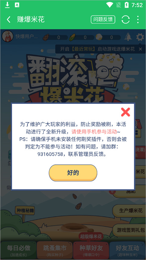 3、请注意,按照提示,手机禁止安装刷奖插件,否则将无法参与活动。