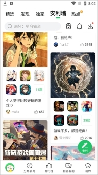 1. 打开应用,在首页点击顶部导航栏里的【安利墙】,进入安利墙页面后,点击好友发布的作品。