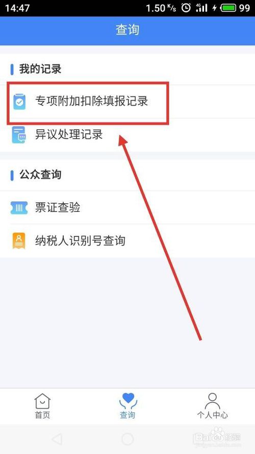 3、在查询界面找到我的记录,点击【专项附加填报记录】,如下图