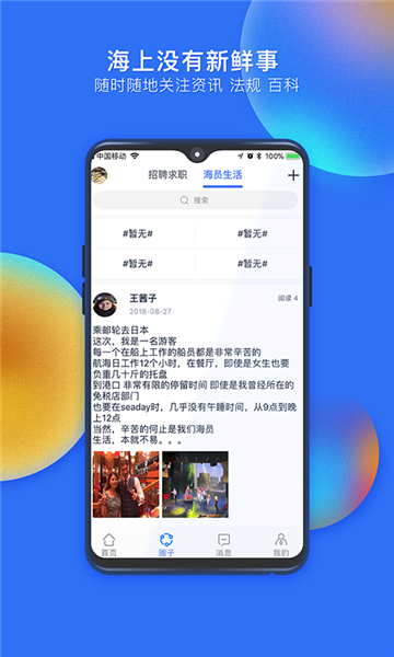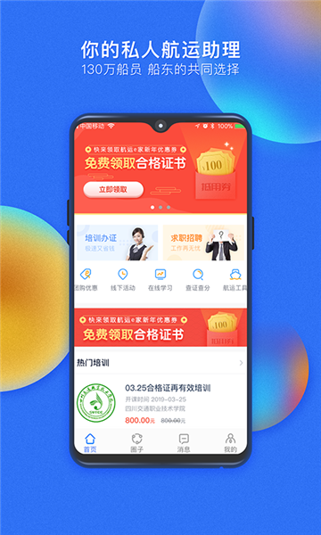 1、聚合天气、潮汐、水位、里程、船位、BDI、船员证书、考试成绩等实用查询。2、院校培训开班一键报名,在线办理服务薄、合格证书、适任证、海员证等船员证书。