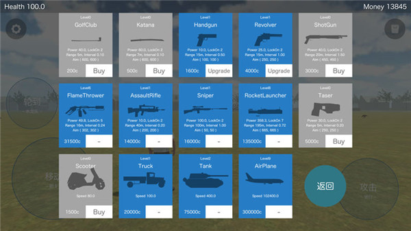 1、让我们通过杀死动物和怪物来收钱。2、你可以购买各种武器和车辆,坦克和飞机也可以购买。