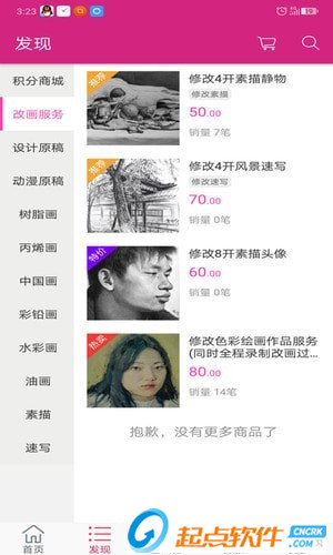 艺云传播app的商城还提供订购改画服务、出售原创作品服务。