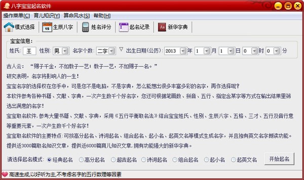 5、支持高分模式取名,结合三才五格生辰八字等多方面综合考虑高分好名。