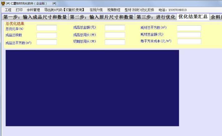 4、排版完成后可以自动算出可重新利用的余料,并且可以导入到余料库存,以备下次优化可以将余料加入计算。