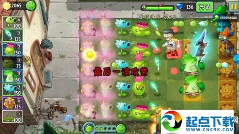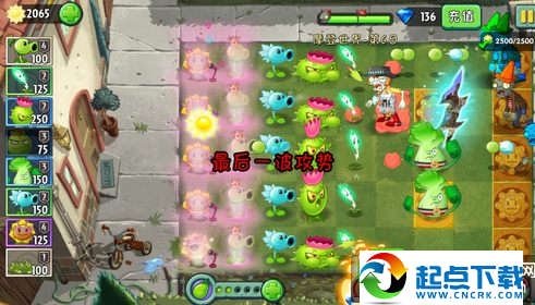 当一大波僵尸来袭的时候,可以把能量豆给激光豆,因为前期基本上不要用到,所以当最后时空裂缝传送过僵尸的时候放大招,这样基本都能消灭僵尸(这样脉冲黄桃就可以不用带上了)