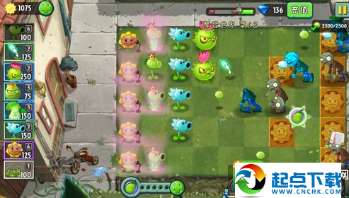 游戏开局种上歌手向日葵,以获取足够的阳光。这个关卡的过关条件是至少生产2500阳光,所以玩家们记得带上你们最好的向日葵。然后是豌豆射手+寒冰射手(攻击力也不弱,还能延缓僵尸进攻速度)。
