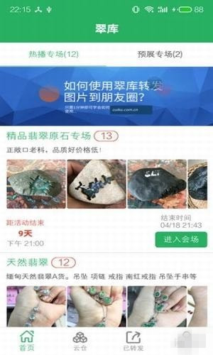 翠库app微商代购只需要将商品图片转发到微信群和朋友圈即可;客户购买后再从翠库APP下单,平台负责鉴定证书、加工设计等相关售后服务。提供7天鉴赏期,买假包赔承诺;每天多个专场最新货源发布,配备专业图文素材。平台里的商品包括翡翠手镯、吊坠挂坠、戒面裸石、耳饰品、戒指、胸饰品、串珠、原石毛料、彩色宝石、绿松石、琥珀蜜蜡、南红、摆件、实木工艺品、树化玉、雕刻作品等。