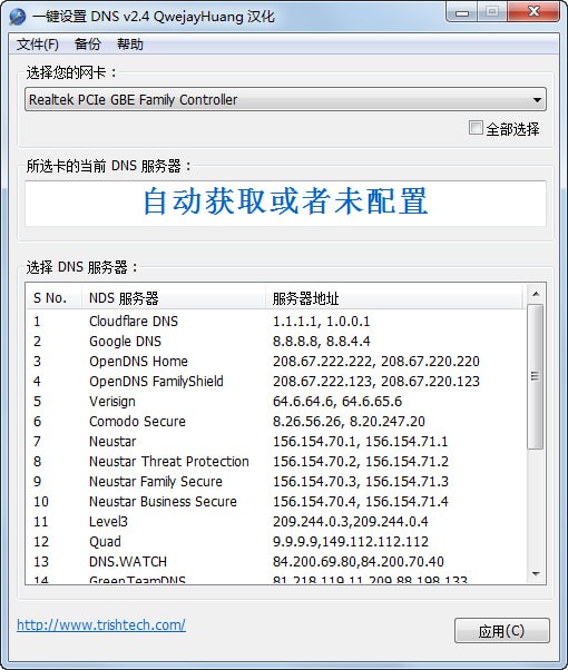 您可以使用公共DNS服务器工具快速切换到预设的一对公共DNS服务器。目前,它有16对预设的DNS服务器-