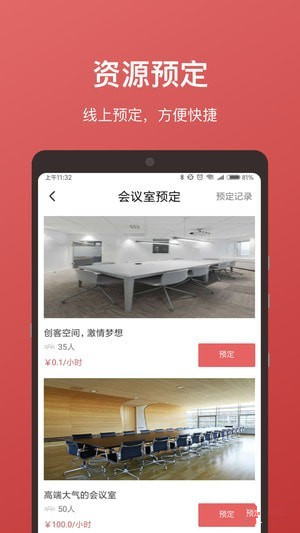 1、门禁二维码:通过大百汇app可实现二维码门禁通行,安全高效。2、会议室预定:大百汇app支持线上预定会议室,方便快捷。