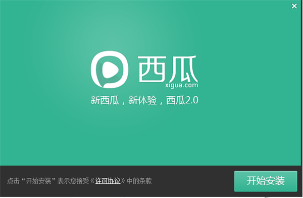 1、打开从本站下载的西瓜影音安装包,双击exe应用程序开始安装,单击“开始安装”。