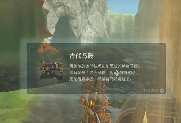 古代马具则是需要购买DLC才能获得对应任务,在高原驿站内有一本书,阅读这本书后会知晓古代马具的所在地。缰绳所在地为萨托利山,马鞍所在地为马神湖和伊巴拉高地中间那条路的尽头。存放马鞍的宝箱在一个巨大的绿植后面,可以支付1000块获得,也可以用磁力抓取器直接将宝箱吸出来。缰绳存放的宝箱是在樱花树下,可以直接用磁力抓取器吸出来。