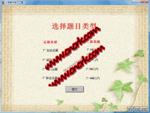 小学算术练习工具可用于小学生的算数练习。它可以自动生成加减乘除运算,还可以设置10以内,20以内50以内,100以内的运算。