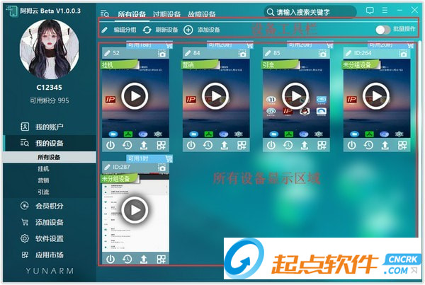 “我的设备”界面是管理所有云手机设备及操作云手机设备的主界面,在此界面可进行设备的管理和操作。