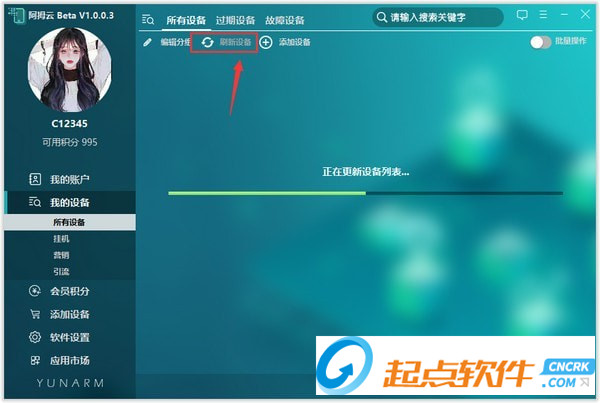 2、点击“刷新设备”,会完全重新获取用户设备列表。