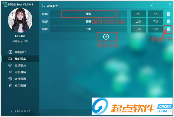 1、点击“编辑分组”功能,可进行分组名称编辑修改、位置移动以及添加、删除分组。