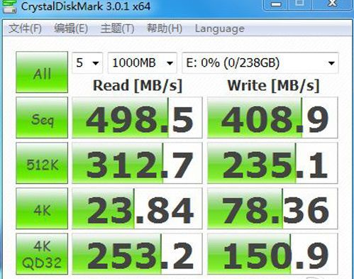 测试小结:从CDM默认设置下测试成绩看出,三款SSD的持续读取速度并无多大差距,持续写入速度就相差甚远,256GB的领先64GB近两倍,比128GB快86MB/s。64GB的持续写入速度相比机械硬盘也无优势可言。128GB与256GB的4K随机读写成绩相差不多,反倒是64GB稍逊一筹。