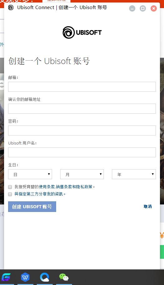 3、跳转至游戏页面后点击登录uplay账号,点击后选择创建账号信息,填写信息后点击创建即可