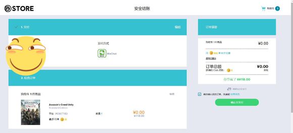 4、创建完成后会跳转回原来的游戏页面,这个时候选择加入购物车并进行支付,点击页面后会跳转出安全结账页面,填写好账单地址,选择好支付方式 ,保存并检查订单即可