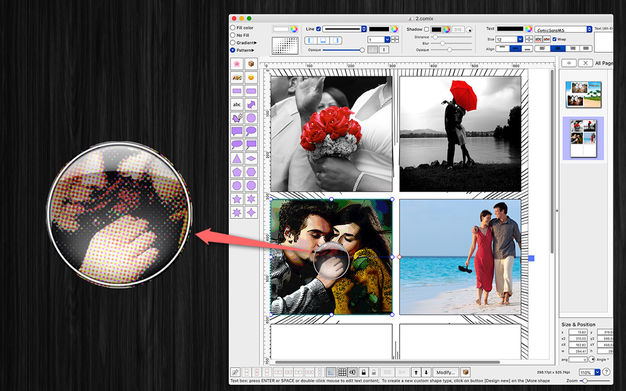 模板:模板包括帮助您使漫画页面更快。自定义形状应用到图像:有许多形状可供您选择作为相框。你也可以旋转形状或改变框架颜色,透明水平。