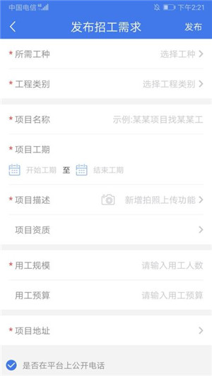 6、所有的招工信息清楚明了,包括项目地址、用工预算等信息。