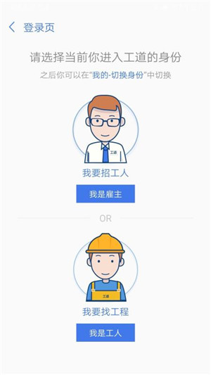 3、提供2种身份切换,可以任意切换招工、找工程的身份。
