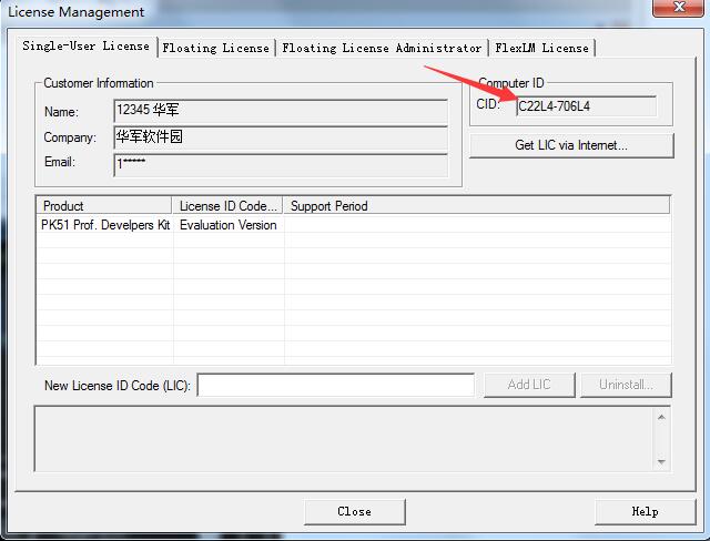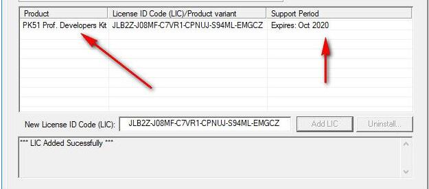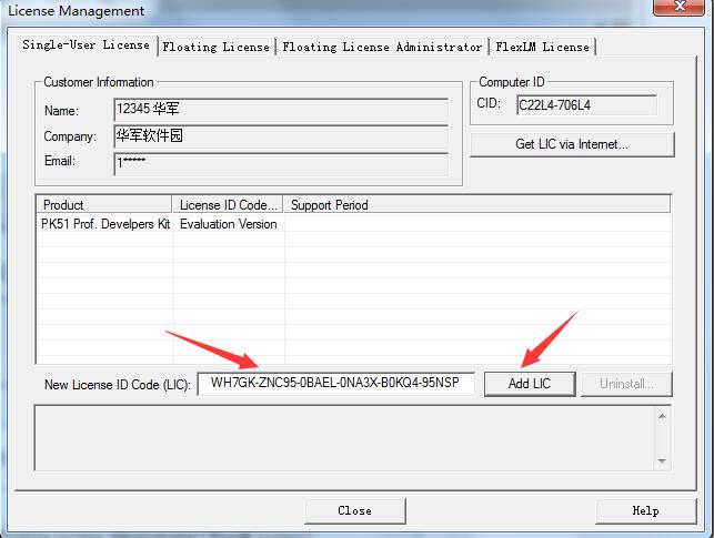5、返回 Keil C51软件,粘贴 到对应位置。点击Add LIC。