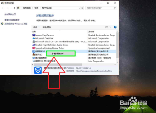 4、在"电脑管家12.11 (编辑)"上右键单击(在"程序和功能"中)。