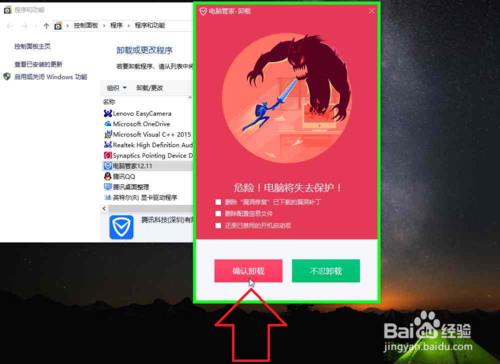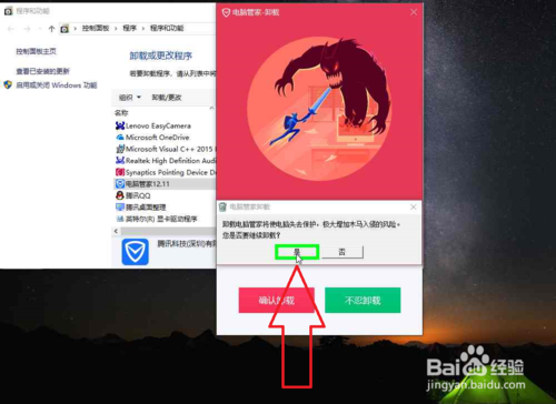 10、在"是 (按钮)"上左键单击(在"电脑管家卸载"中)。