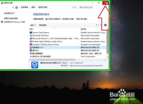 13、在"关闭 (按钮)"上左键单击(在"程序和功能"中)。