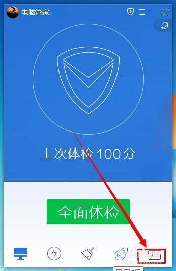 电脑管家如何固定网址?1、在电脑管家下方工具标记处,打开工具面板。