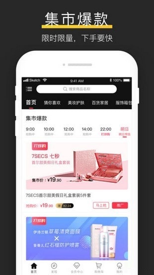 1.专享秒杀 - 每天抢超低折扣,名额限量手慢无!2.包邮专场 - 9.9包邮送到家,麻麻夸我会持家!