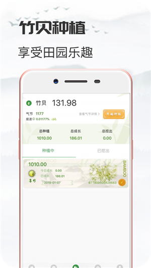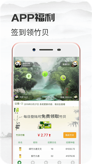 用户在竹贝app种植竹子可以获得收益,种的越多收益越多。