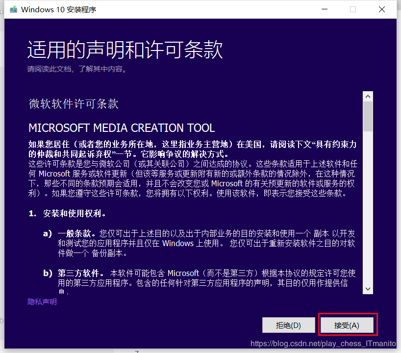 一大堆条款,忽略不看;点接受