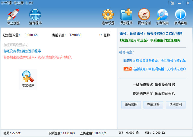好钢用在刀刃上,二七代理(27代理免费版)把优质的带宽充分使用在游戏加速方面,专门提供魔兽世界加速,而放弃了下载加速、浏览网页加速和其他网络游戏加速等功能。