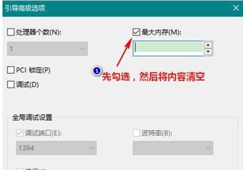 5、接着我们勾选此处的“最大内存”,然后将里面的数值删除,或者是输入0,然后点击应用/确定