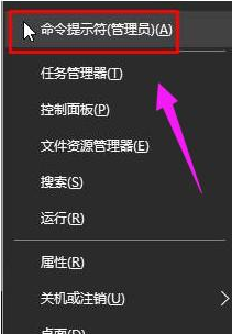 1.进入win10系统桌面,然后按键盘上的Win+X组合键,在弹出的菜单中选择“命令指示符(管理员)”选项打开,进入下一步。