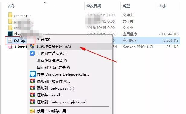 3.选中【Set-up.exe】文件后,鼠标右击选择【以管理员身份运行】。