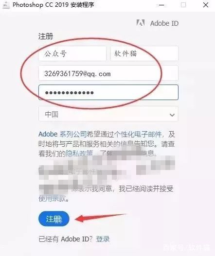 ★·PSCC2019怎么破解?photoshop2019电脑版破解方法1、下载数据包然后解压,双击CreativeCloud2019Set-Up.exe,没有Adobe ID的朋友点击获取,然后随便填个信息和标准格式的email并点击注册
