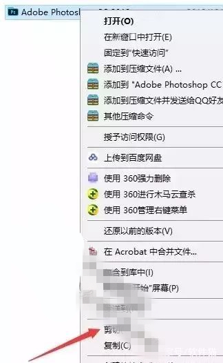 14.鼠标右击Adobe Photoshop CC 2019文件夹后选择【剪切】。
