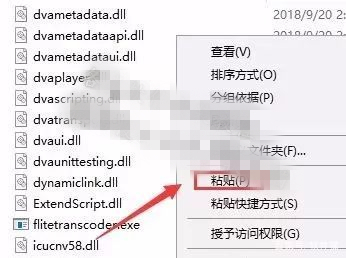 19.在空白处鼠标右击选择【粘贴】,然后选择【替换目标中的文件】。