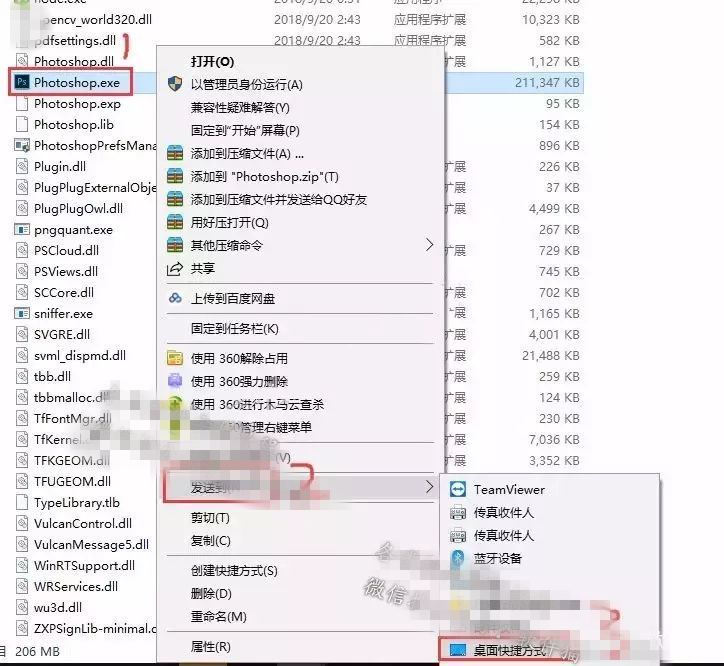 20.找到【Photoshop.exe】程序后,鼠标右击【Photoshop.exe】然后选择发送到桌面快捷方式。