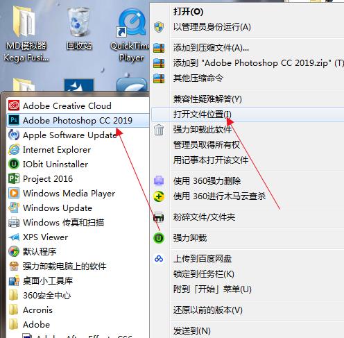 5、到开始菜单中找到软件,单击鼠标右键——打开文件位置