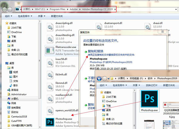 18.双击打开粘贴后的【Adobe Photoshop CC 2019】文件夹。