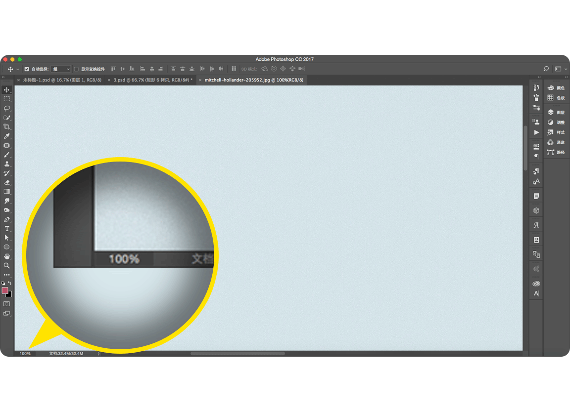 相信这种梗你们也都遇到过,Ps开一个尺寸很大的图片,当你放大到100%视图,在某个区域做图像处理后,想找到画面中的其他元素做处理,这时候…你会发现视图中由于显示比例问题,在不缩小比例的情况下,找到某个区域有点麻烦。